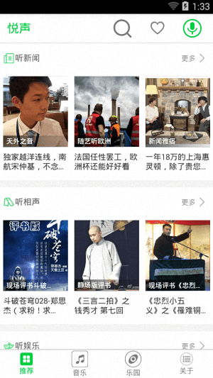 1、打開應(yīng)用首頁,你會看到“推薦”、“音樂”和“樂園”等板塊