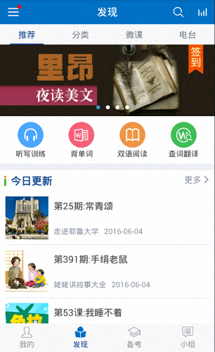 “非常實用,很厲害的英語軟件。很適合練四六級的聽力,會保留整個大學的”