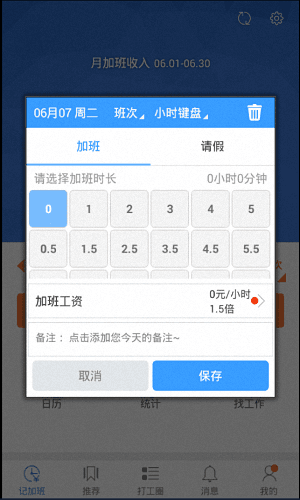 為您提供智能的日歷記錄,輕松的添加加班時長,換班,節假日加班,周末加班等。