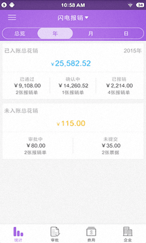 閃電報銷安卓版是一款專為中小型企業打造的手機費用管理軟件,它能幫助你輕松的管理企業的一些費用情況,讓你更好的管理企業,而且還能通過財務的數據情況為您解決企業經營的決策,并且還能通過它隨時隨地的查看消費情況,對數據智能的進行審批,讓你輕松的管理單據。