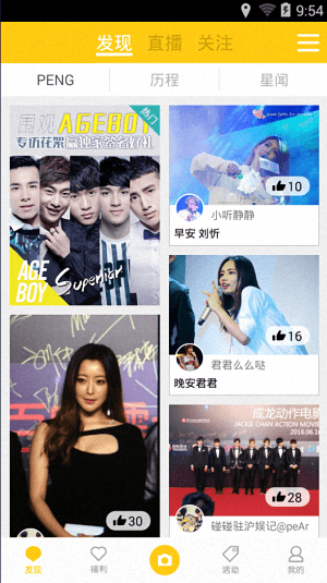 PENG是一款專門為廣大粉絲用戶們打造的娛樂社區(qū)應(yīng)用,它能夠為用戶們隨時推送各種明星新資訊,用戶們可以了解到自己偶像的第一手動態(tài),不僅如此,這里還有很多在線活動,你可以隨意參與,更有強(qiáng)大的娛樂活動眾籌功能哦,是您的佳選擇!