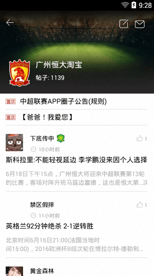 4、選擇喜歡的球隊,即可查看帖子和發(fā)表帖子