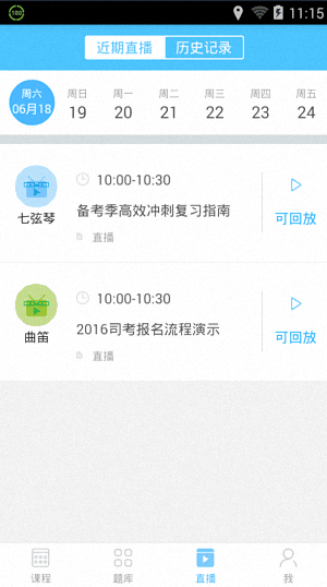 3、點擊直播版塊,可以通過日期分類查看各種課程直播,還能支持回放哦