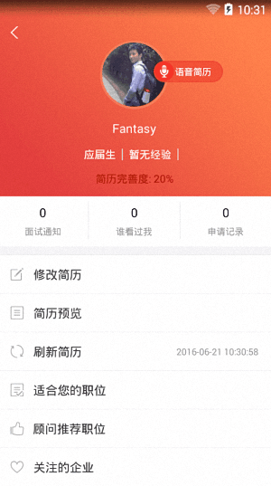 - 我的簡歷模塊增加了顧問推薦職位和簡歷外發功能;