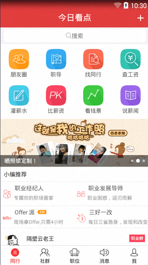 一覽是一款非常受歡迎的職場交流社區,它也是目前好的同類軟件之一,不僅能夠讓你在線發布自己的簡歷,以尋找自己的合適工作,更有職場達人為你貼身打造生涯計劃,還能夠有效地對你的生活經驗進行記錄哦,這里更是一個完美的學習社區,你可以在線學習到各種職場技能,十分的人性化!