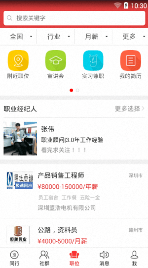 1、在線發布簡歷,尋找工作,有海量的企業入駐,你可以看到各種招聘信息