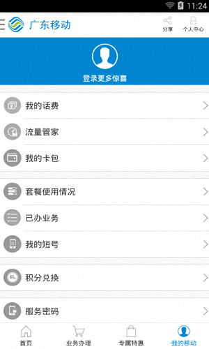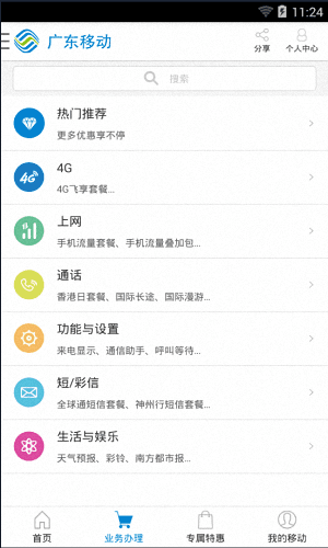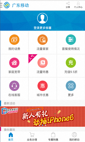 廣東移動安卓版是一款專業的手機營業廳服務軟件,不管你在哪里,都能輕松的辦理業務,還有貼心的在線充值功能,讓你隨時隨地的充值繳費。