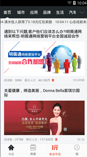 首發是一款十分給力的手機搶紅包社區應用,它能夠為用戶們提供各種在線任務,用戶們只需要完成閱讀或者分享,都會直接受到各種紅包獎勵,完全不費力氣,非常給力,目前已經有海量的用戶進來搶了,你還在猶豫什么,趕緊來搶吧!