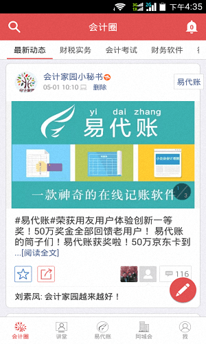 會計家園安卓版是一款優秀的手機學習交流軟件,在這里你能隨時隨地的和專業的會計從業人員交流,還能找到愛學習的朋友和你一起學習。