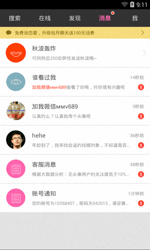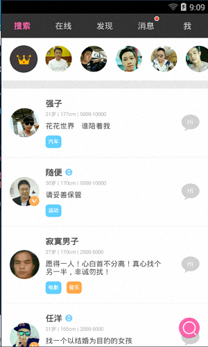 免費注冊該軟件,進入搜索頁面,查看你心儀的異性朋友