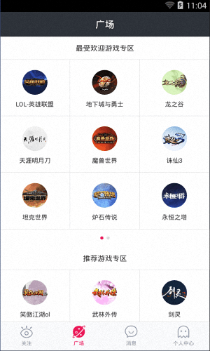 下載該軟件進入廣場頁面,為您推薦多種游戲