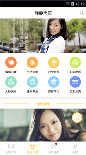 靜靜是一款十分給力的心理交流社區應用,無論你遇到什么心理上的障礙,都可以直接來這里分享,會有人幫助你解決任何問題,如果有需要,還有專業的認證專家為你提供咨詢服務,十分的人性化,它真正是一款實用的心理交流平臺哦。