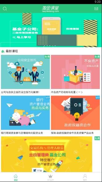淘金課堂是一款專門為廣大金融學系工作者打造的學習應用,這里有完美的線上課堂,擁有資深的金融專家,你可以直接在線觀看他們的直播,不僅如此,這里還有全面的金融干貨,實時更新,你一定能夠學習到很多的。