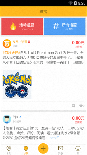 友賞是一款很優秀的互助交友社區應用,用戶們可以直接在線求助,也可以進行有償求助,更可以在線出賣自己的多余時間和業余技能,不僅如此,你還可以在線分享自己的精彩文章,以獲得打賞,更可以直接在線交友。