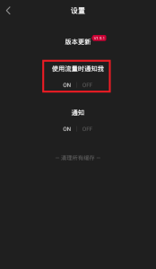 2、進入下一個頁面,可以看到“使用流量時提醒”,勾選ON即可