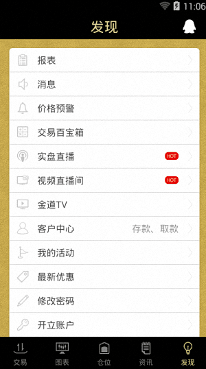 金道貴金屬是一款十分受歡迎的貴金屬交易平臺,它能夠為用戶們提供全面的全球財經資訊,能夠進行深層次的分析,能夠讓你了解到深刻的財經動態,用戶們還可以直接在線開戶,在線進行交易,它擁有十分貼心的提醒功能哦,你完全不用擔心任何問題。