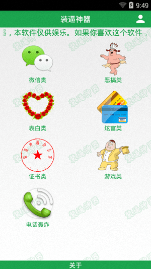 裝逼神器,一秒變土豪,讓你炫酷到底,提前享受土豪的快感,這才是真正的炫富神器,支持微信等常見炫富軟件,要想富,就用裝逼神器。本軟件重新改版,各種裝逼陸續歸來。另外還有各種會員福利哦。