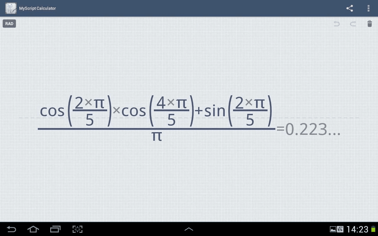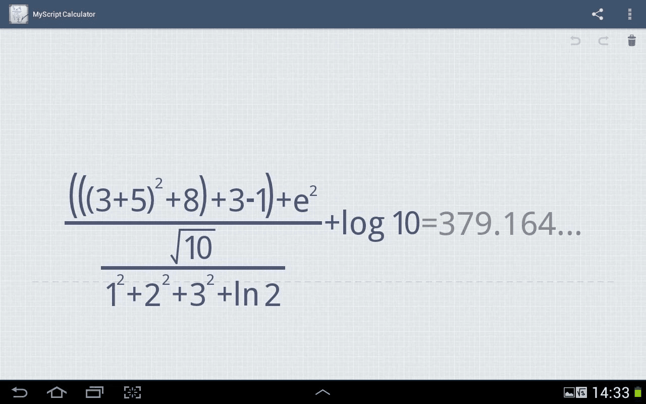 MyScript計(jì)算器是一款十分強(qiáng)大的計(jì)算器應(yīng)用,它完全能夠支持手寫(xiě)輸入,能夠支持各種開(kāi)方、三角函數(shù)和方程等的計(jì)算,真正是目前強(qiáng)大的計(jì)算器之一,使用起來(lái)十分的方便,不得不說(shuō),它真正是廣大學(xué)生用戶們的必備神器。