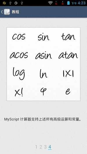 MyScript計(jì)算器是一款很受歡迎的計(jì)算器。它能夠?yàn)橛脩魝兲峁┦滞昝赖挠?jì)算功能,支持各種方程、三角函數(shù)等的計(jì)算,完全是傳統(tǒng)計(jì)算器所達(dá)不到的哦,它完全支持手寫(xiě)輸入,讓廣大用戶們使用起來(lái)更加的方便,它也是目前好的手機(jī)計(jì)算器之一哦。