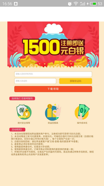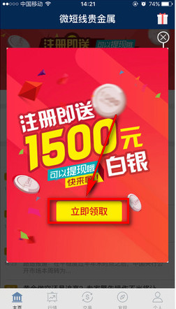 新用戶注冊(cè)本軟件,既可以獲贈(zèng)1500元白銀資金,用戶利益利用這些資金進(jìn)行交易。
