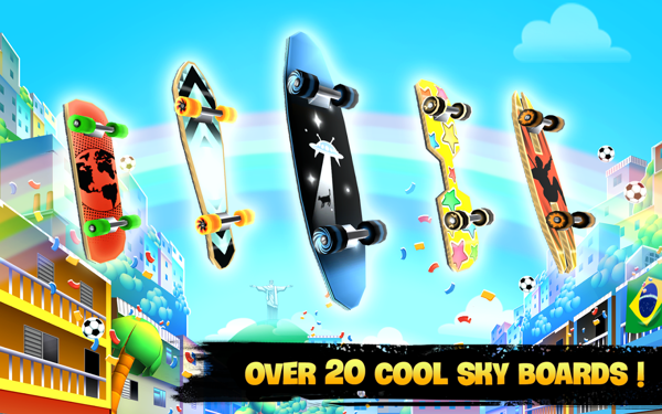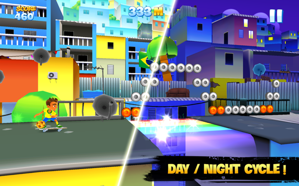 《天空滑行者 Skyline Skaters》是一款滑板跑酷游戲,游戲中共有四個游戲角色可以選擇,不僅是酷哥萌妹,還有一只熊,而他們滑行的地點都是在屋頂上。跳躍躲過障礙,還有就是所有跑酷游戲關鍵的吃金幣,獲得的金幣能更換滑板,升級滑板能力等等,不時出現(xiàn)的直升機可要小心啊,這時你要是滑倒或者出點狀況,就會被警察蜀黍抓住,打入大牢萬劫不復!如果想要繼續(xù),那就要下狠本了。