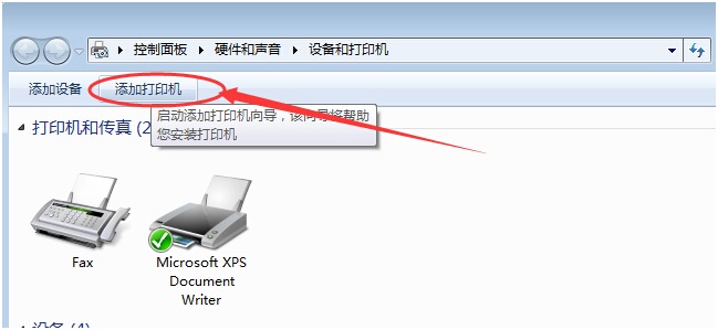 1、 打開“設備和打印機”,在菜單中選擇“添加打印機”: