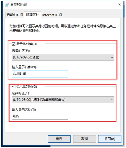 3、在日期和時間設置對話框中,選擇第二欄“附加時鐘”,根據表格提示,添加自己喜歡的或者自己有用的時區。