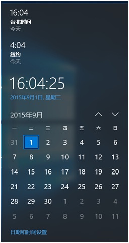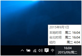 經過以上修改,現在點擊右下角時間,系統時間本地時間之外還顯示剛剛添加的時區的時間