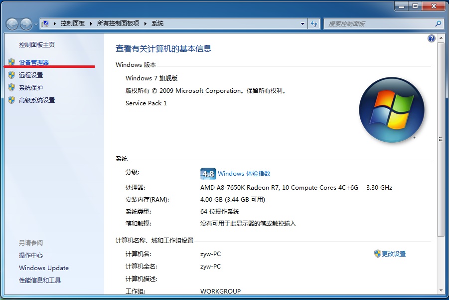 2、在打開的窗口中,選擇”設備管理器“: