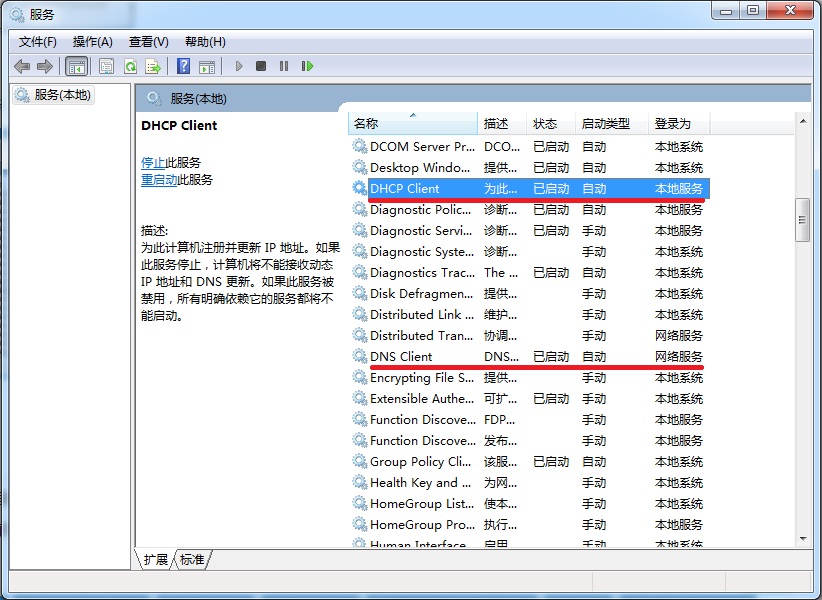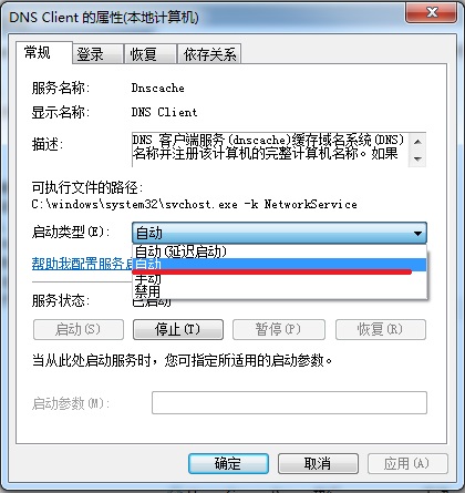 2、在打開的服務列表中找到“DNS”和“DHCP”服務,點擊在啟動類型中選擇自動,即可完成。