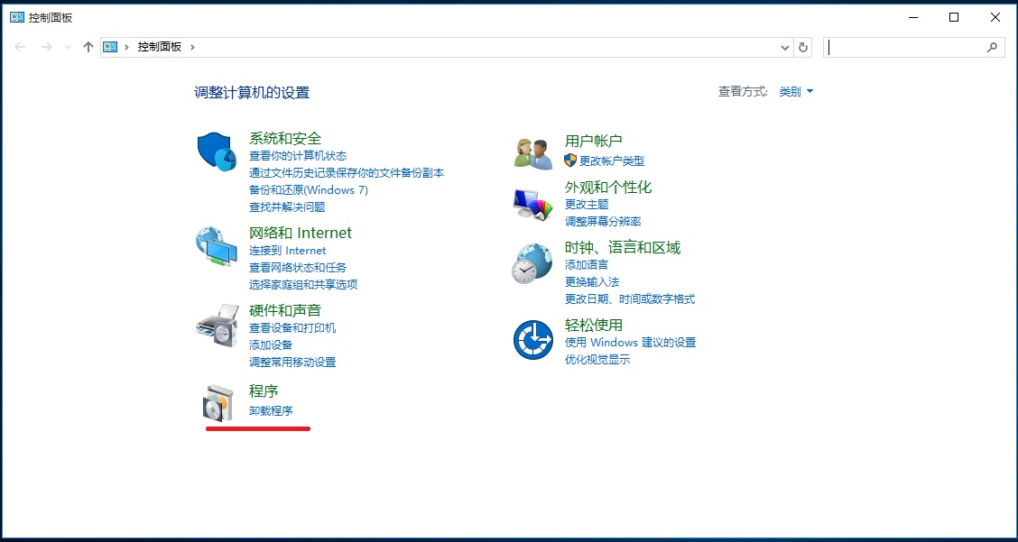 2、在“控制面板”窗口點擊“程序”: