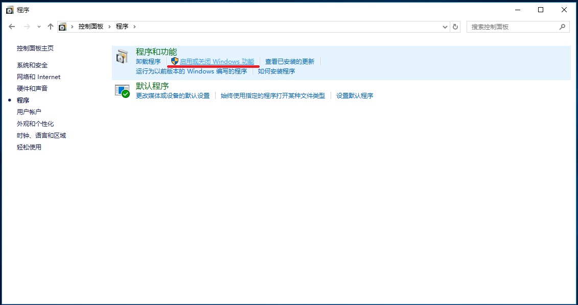 3、在程序窗口中“程序和功能”中點擊“啟動和關閉windows功能”:
