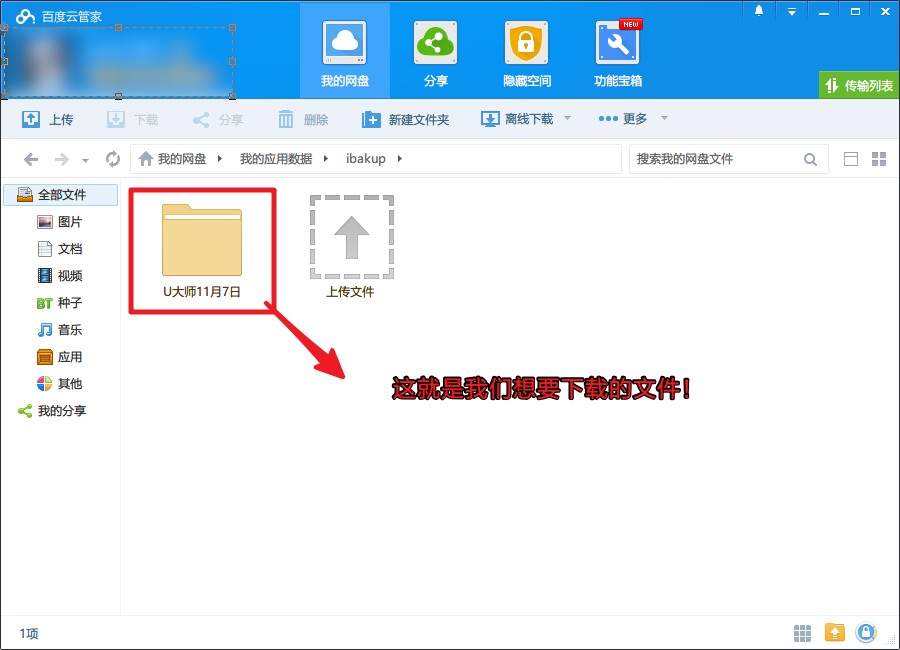 2.進入百度網(wǎng)盤,找到自己想要下載的文件