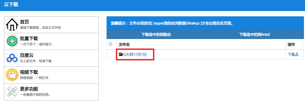 以上就是使用小米路由下載百度云盤文件的方法,如果你也碰到這樣的問題,不妨按照以上方法進行嘗試。另外,此方法來自小米論壇,可能時間長久之下會失效,如果失效請去小米論壇查看新方法。U大師軟件中心持續(xù)為您提供做有效的系統(tǒng)教程和使用方法,歡迎關注。