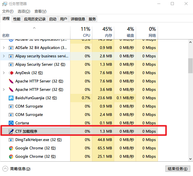 首先打開任務管理器,找到ctf加載程序