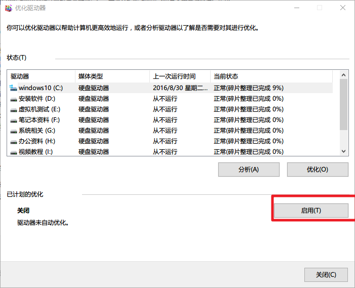 打開(kāi)磁盤(pán)碎片整理程序后,我們開(kāi)始分析然后整理即可