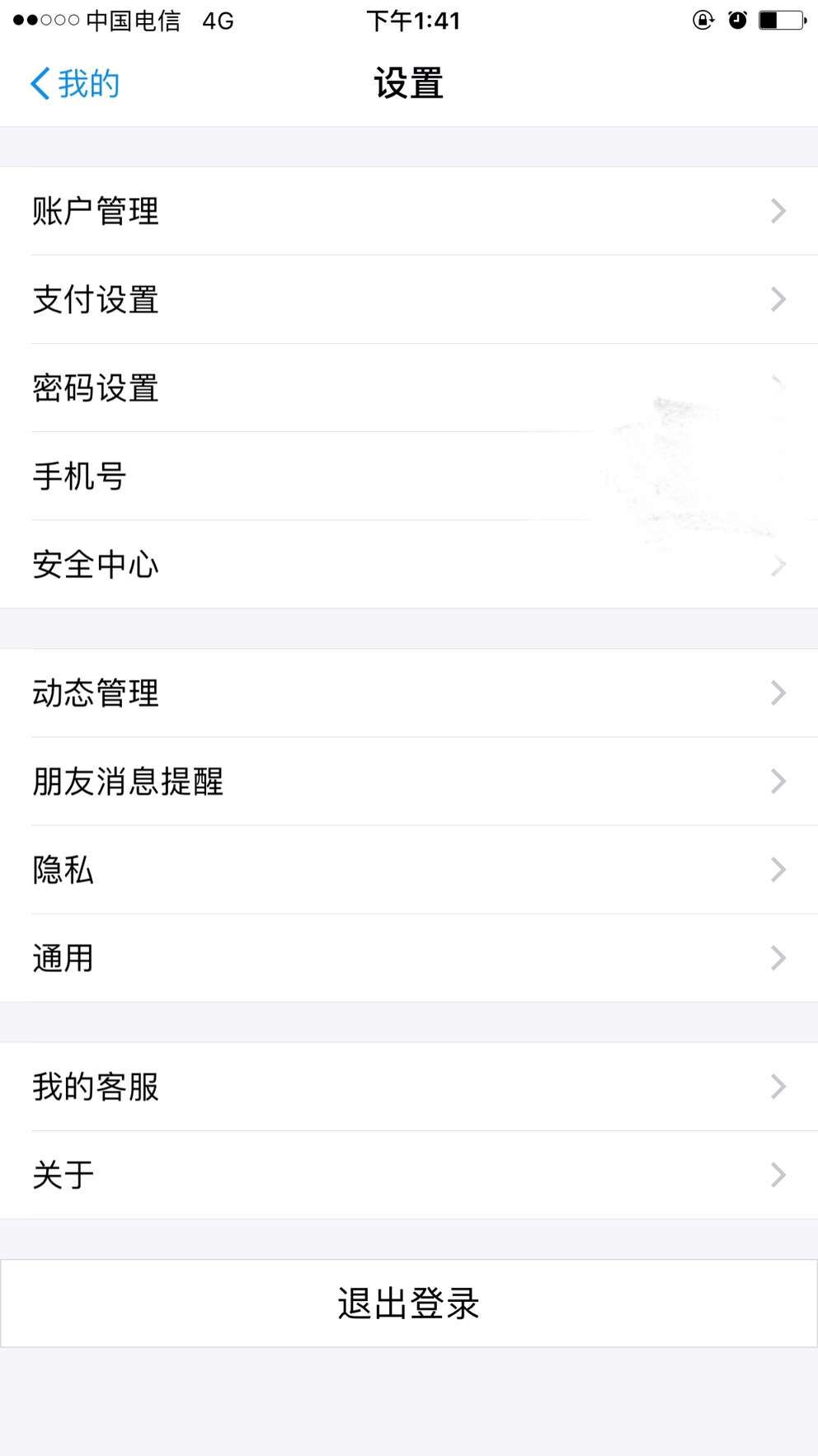 3、我們可以在后一行看到【退出登錄】按鈕,然后選擇點(diǎn)擊;