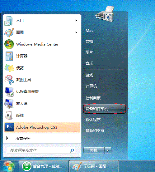 1. 點擊【開始】按鈕,選擇【設備和打印機】,如下圖: