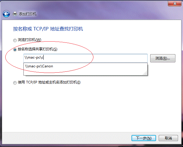 1. 選擇【瀏覽打印機】,點擊【下一步】,如下圖: