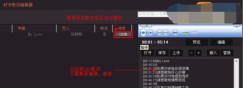 蝦米歌詞編輯器是一款優秀的lrc格式歌詞編輯軟件,該軟件能夠幫助用戶更快速更高效的編輯lrc歌詞,使用方法非常簡單,編輯完成后還可以與好友們分享,歌詞編輯變得如此簡單!