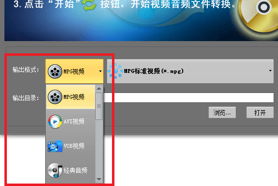 3、點(diǎn)擊“輸出格式”,選擇格式類(lèi)型;