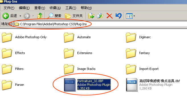 2、打開PS應用程序的安裝目錄,點擊“Plug-Ins”文件夾,粘貼濾鏡插件;