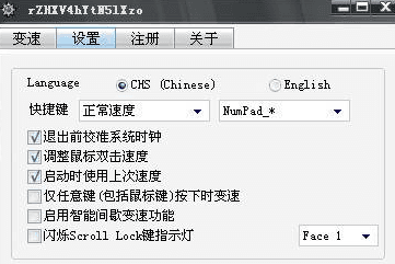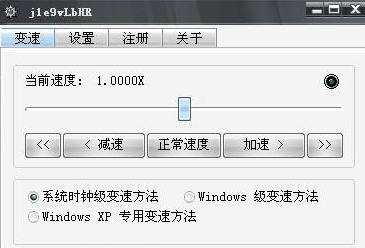 a變速器是一款非常實用的系統變速工具,它可以幫助你方便的調節Windows系統及其應用程序的運行速度,軟件還支持快捷鍵操作,操作非常方便。軟件主界面具有變速、設置、注冊、關于四大功能選項,非常的簡潔直觀。