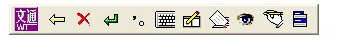 從左到右依次為:軟件logo,退格按鈕,刪除按鈕,標題符號,鍵盤輸入按鈕,手寫板,復制按鈕,隱藏界面按鈕,鼠標手寫板切換按鈕,后一個為菜單。