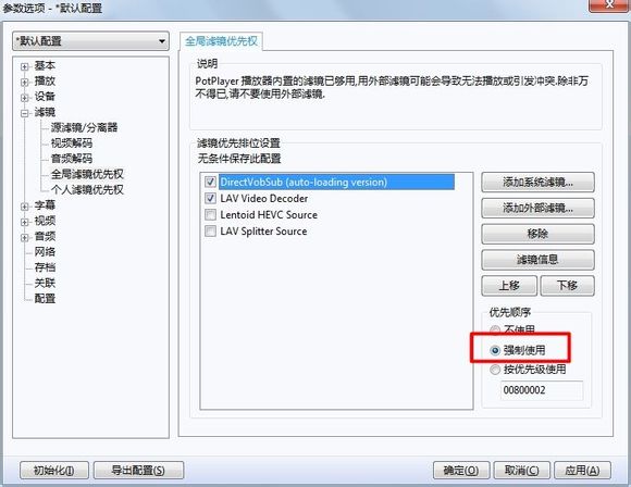 4、或者進入參數選項配置,選擇“強制使用”。