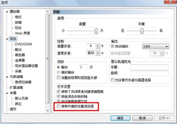 3、然后勾選“打開設置”中的“使用內建字幕渲染器”;
