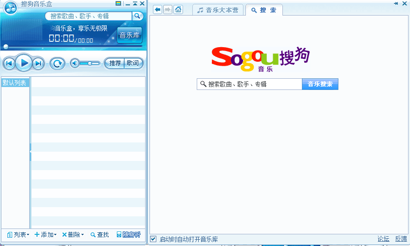 搜狗音樂盒是由搜狗互聯網公司開發的一款專門用于網絡在線聽音樂的播放器,相信很多的人電腦輸入法是使用的搜狗輸入法,的確使用很方便。這款搜狗音樂盒也是非常好用的一款電腦音樂客戶端。
