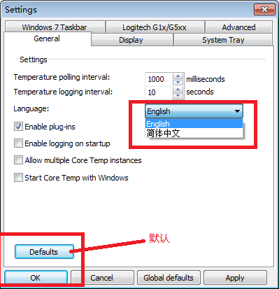 3、點擊“簡體中文‘,選擇默認,即可轉換為中文版本,顯示CPU的運行狀況;