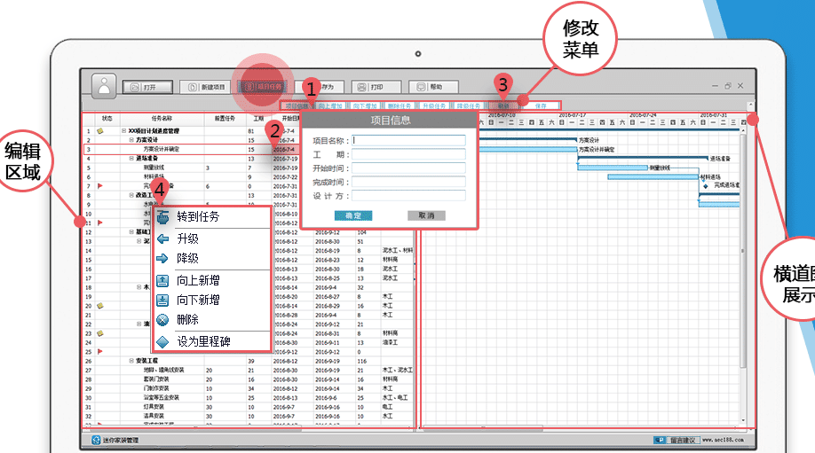 橫道圖顯示,輕點鼠標,便能顯示信息。