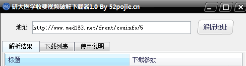研大醫(yī)學(xué)收費(fèi)視頻破解下載器是一款非常好用的下載工具,軟件專門針對(duì)研大醫(yī)學(xué)收費(fèi)視頻而設(shè)計(jì),可以讓你下載這些視頻,是醫(yī)學(xué)專業(yè)同學(xué)的福音。軟件界面界面簡(jiǎn)潔,操作簡(jiǎn)單,只需要點(diǎn)擊解析按鈕,然后選擇需要下載的視頻下載即可。